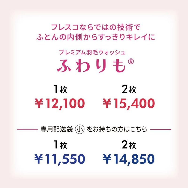 プレムアム羽毛ウォッシュ「ふわりもⓇ」「掛けふとん」「おトク!160」コース用